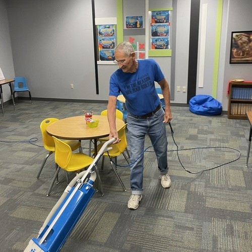 the church through hands-on assistance with tasks like vacuuming, mowing, trimming shrubs,