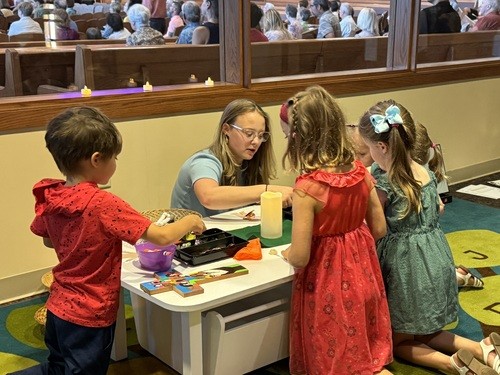 Sanctuary service featuring music by Crowded Table; Pray-Ground option for kids.
