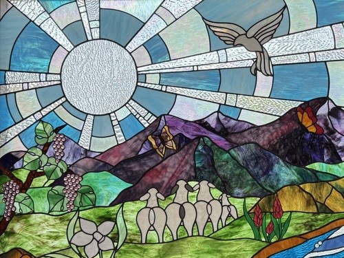 Intimate experience in our stained-glass chapel, featuring piano-accompanied hymns and small group setting.